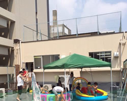 Linkerにはプレイルームと同じぐらい(それ以上?)の広さの屋上があります。夏には水浴びも可能です。
